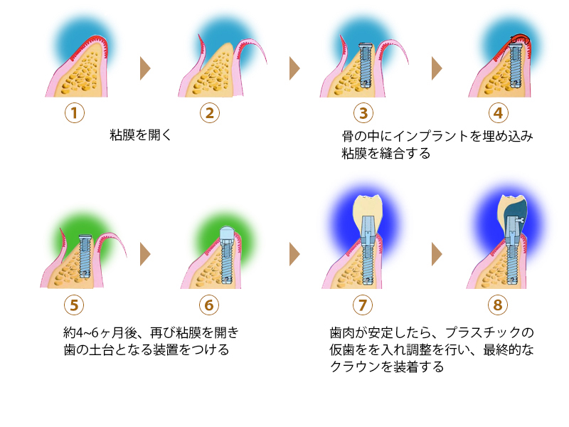 ※治療期間は部位や骨の質などにより個人差があります。また、この期間は必要に応じて仮の歯を入れることもあります。